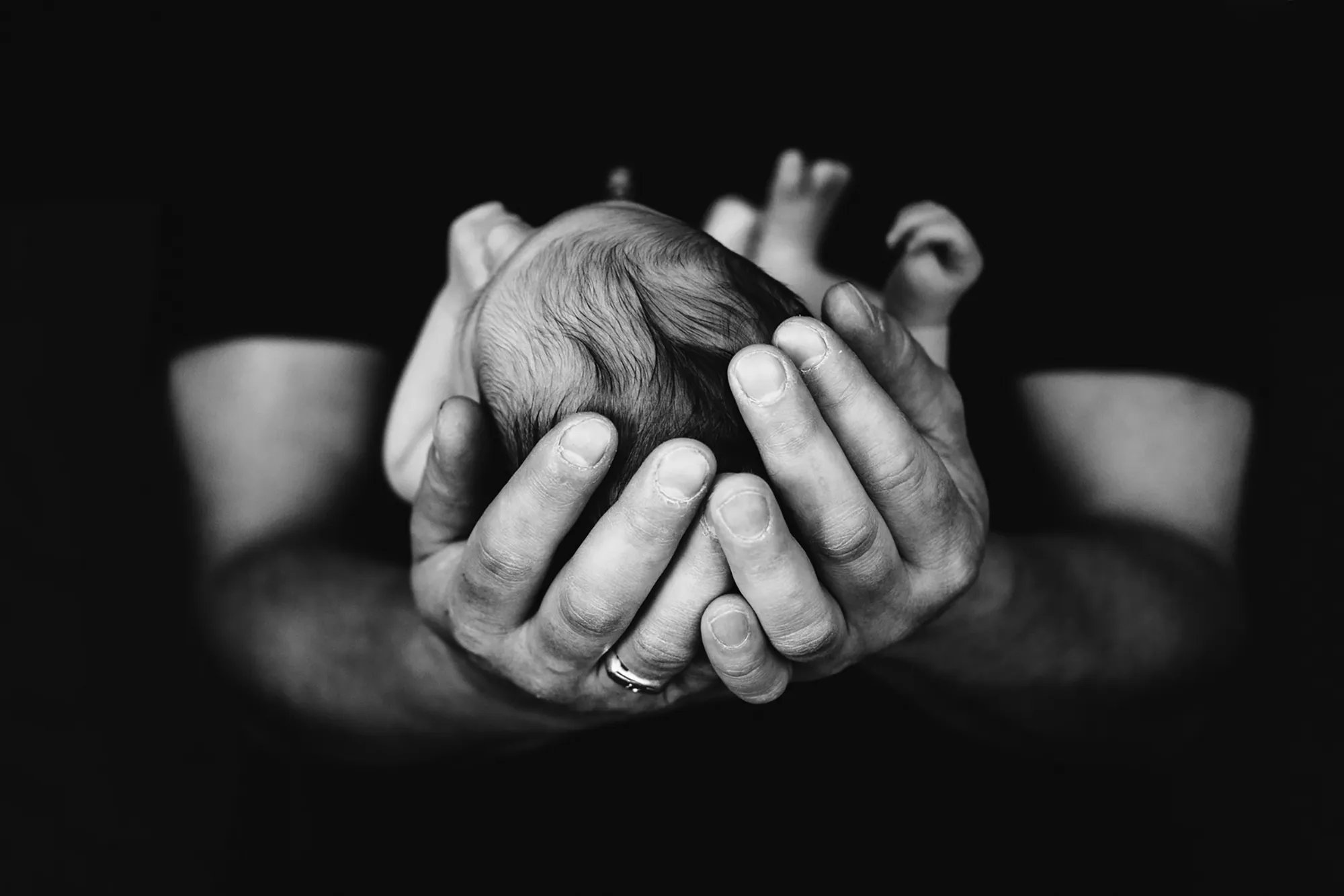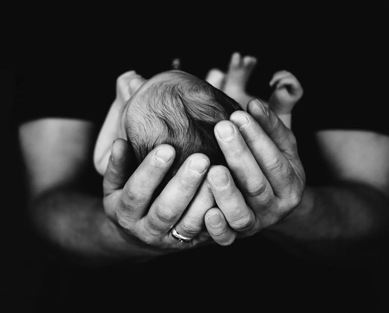 Dès votre arrivée au studio (ou dès mon arrivée chez vous) je vais prendre bébé contre moi. Ce qui va me permettre de le rassurer, de l'endormir au besoin et surtout d'éviter qu'il ressente votre stress. Car même si vous me dîtes que non, je sais qu'il y a toujours une petite appréhension concernant le résultat et ce stress, il le sent. Les bébés sont des éponges émotionnelles. Rassurez vous, je suis formé, et j'ai l'habitude.