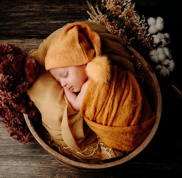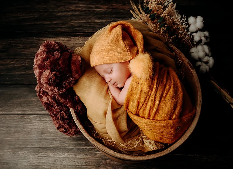 A l'aide des mes fonds, de contenants et d'accessoires, je créé des travaillées mais naturelles de votre bébé.